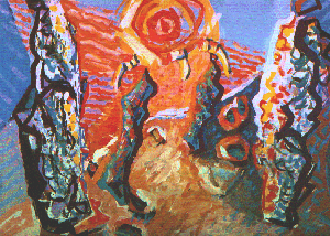 Zypressen, 1995. 74 x 97 cm, Tempera