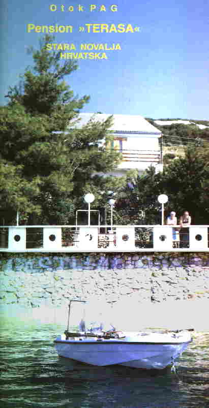 Ferienhaus der Familie Wiemers in Stara Novalja (Insel Pag) 2 Apartments mit jeweils: - 2 Schlafzimmer mit Doppelbetten - 1 Zimmer mit 1 Bett - Bad mit Dusche/WC - Wohnzimmer mit Telefon - Küche mit Herd und Kühlschrank Preise von 55 bis 110 DM pro Tag, je nach Saison Frei ab Anfang September |